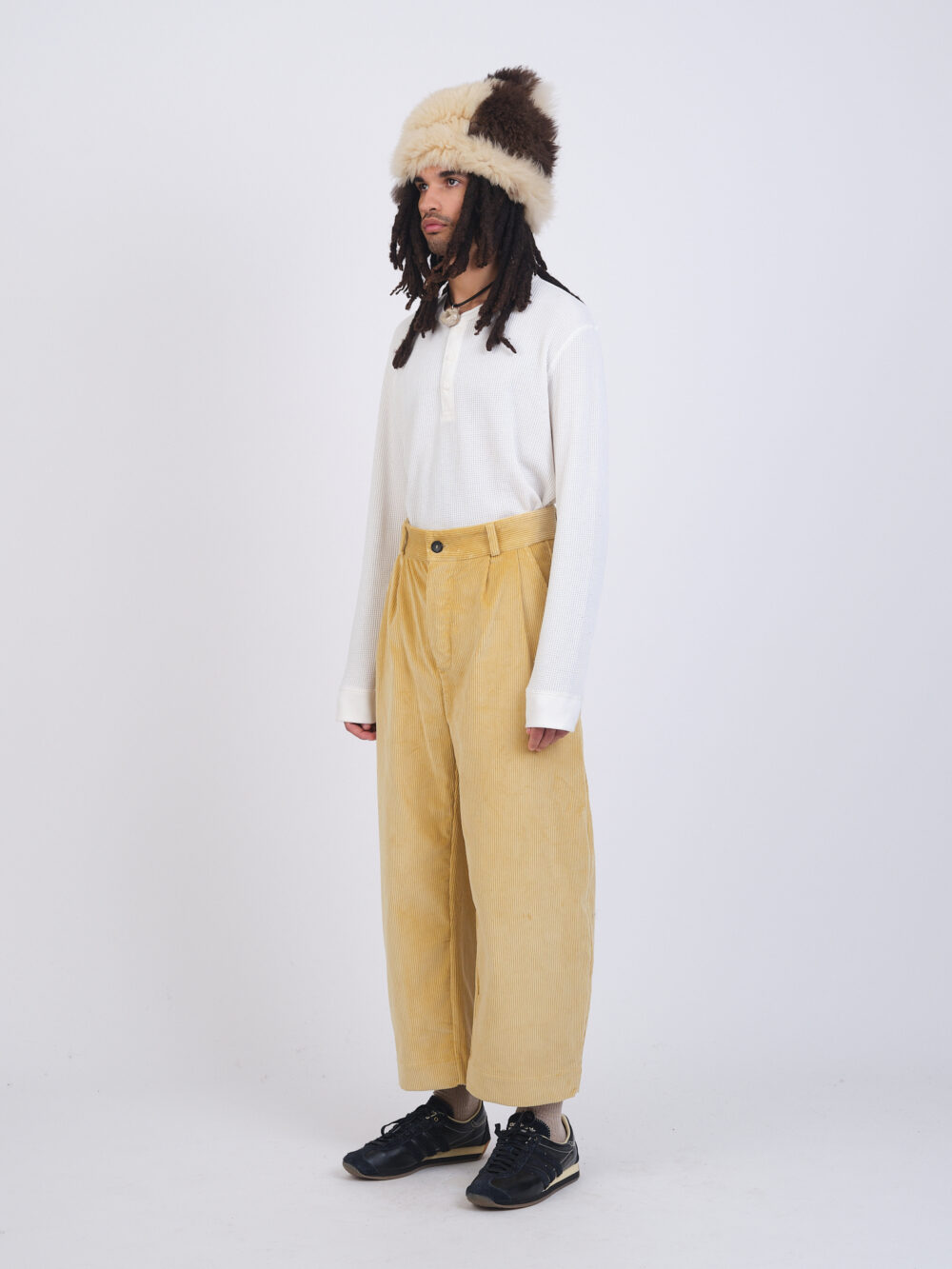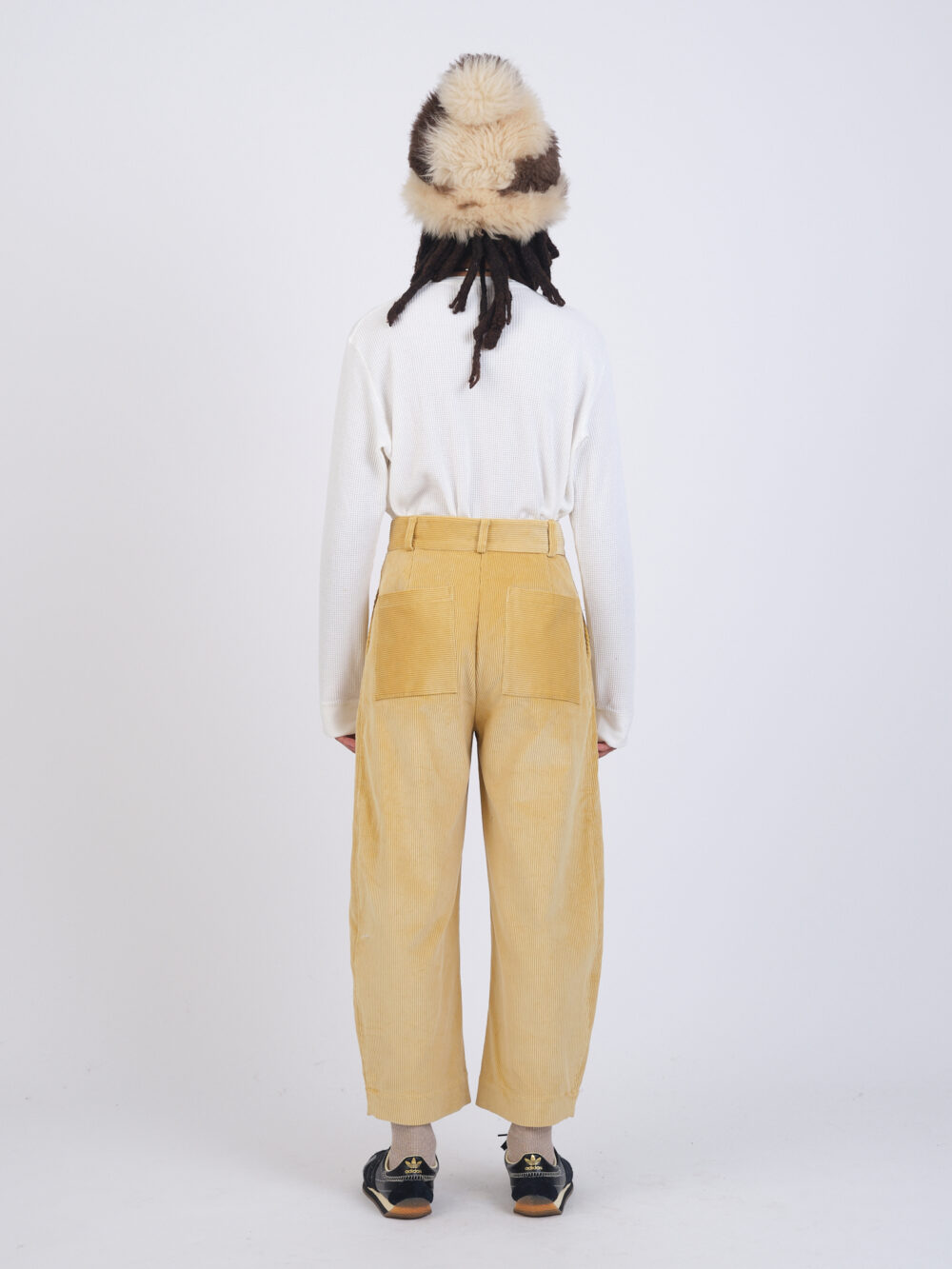 The Robby Trouser in an 8 wale British cord. A balloon style leg, featuring front pleats, side pockets, back patch pockets, belt loops, and hidden button fly. Perfect to pair with the British Cord Sandy Jacket for a matching suit, or on their own.