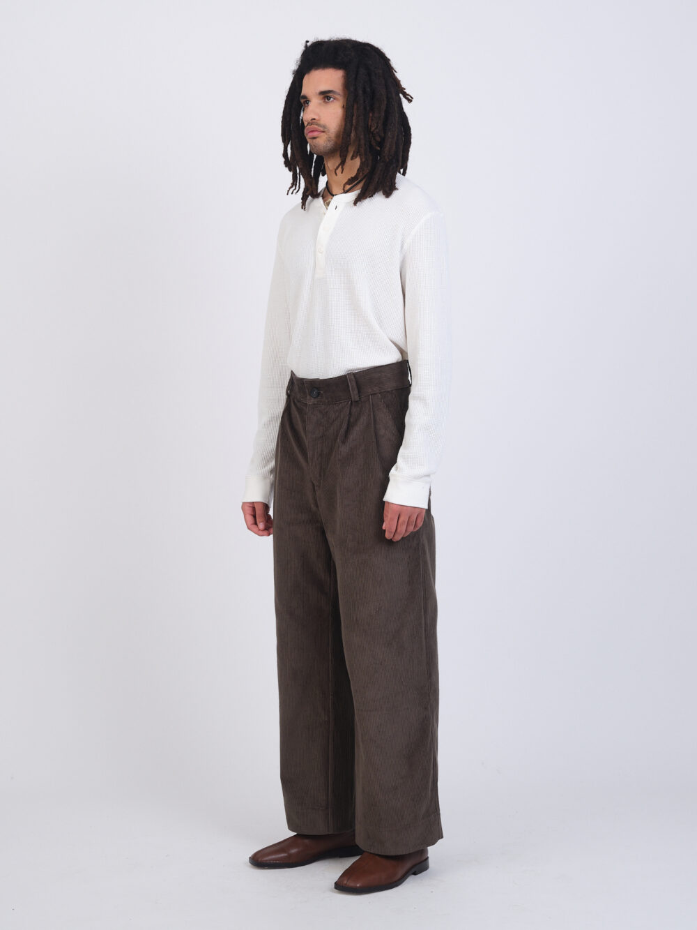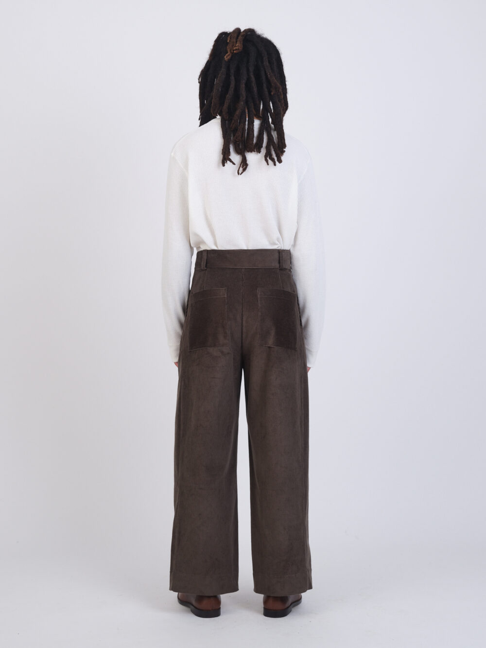 The Willa Trouser in an 8 wale British cord. A straight leg style, featuring front pleats, side pockets, back patch pockets, belt loops and hidden button fly. Perfect to pair with the British Cord Sid Blazer for a matching suit, or on their own.