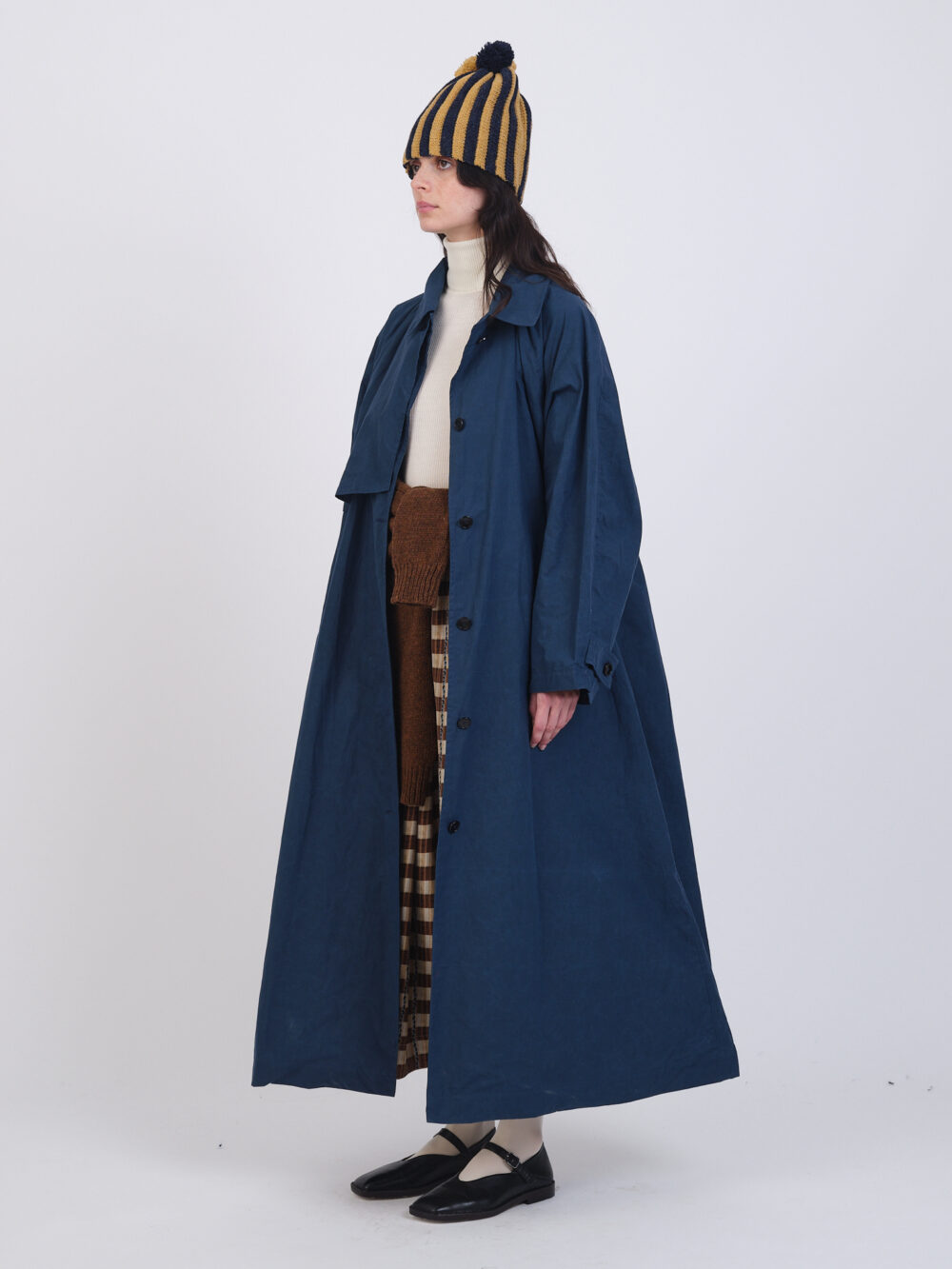Our new Wickham Mac is a long classic style featuring a storm flap on the righthand side, a back vent with optional button closure, and a belt secured by buttons at the back. Also featuring an adjustable button closure at the cuff so you can cinch the cuffs as desired.