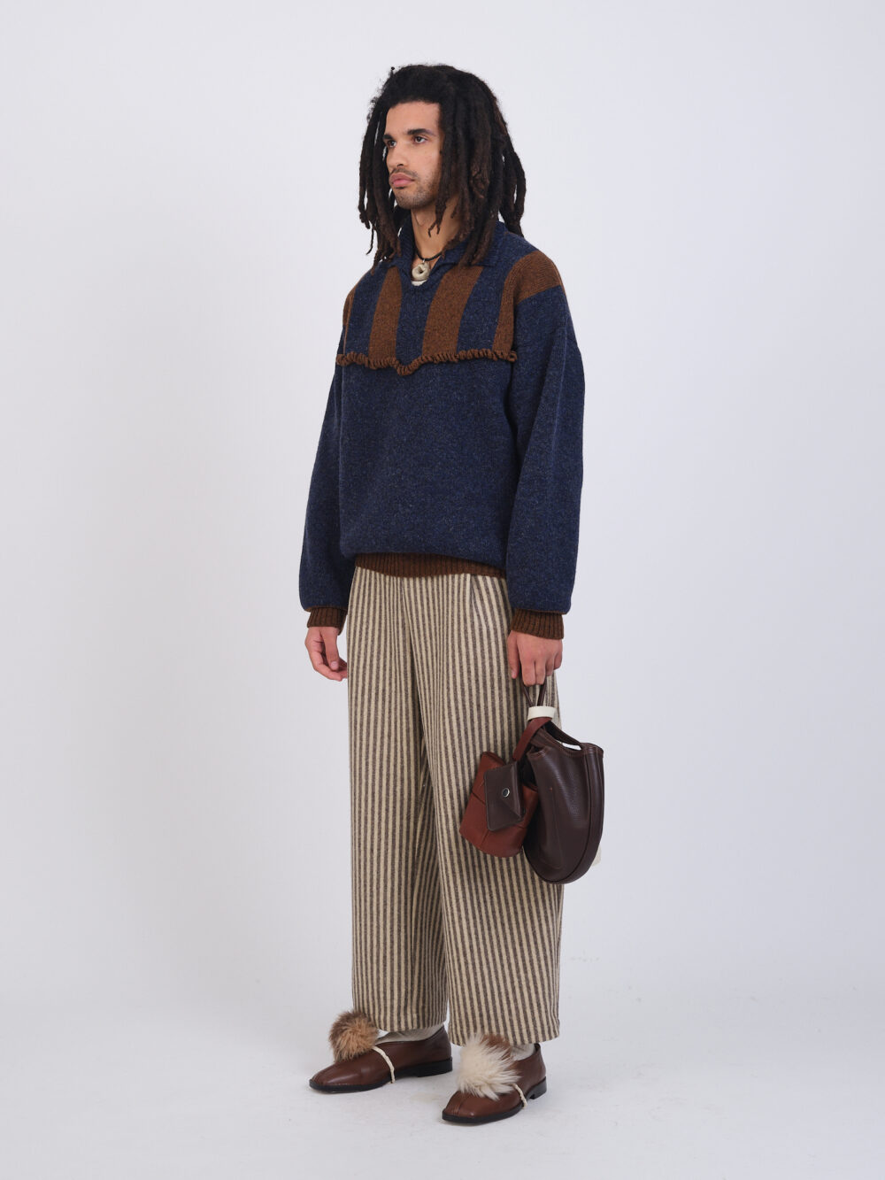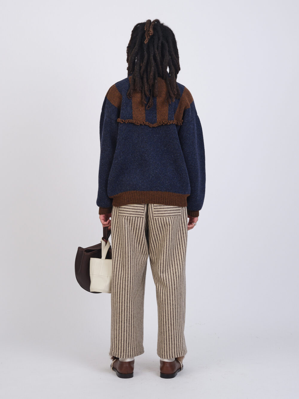 The Felix Jumper is a cozy pullover, featuring a striped yoke, wool fringe detail, knit collar and contrasting cuffs and hemline.