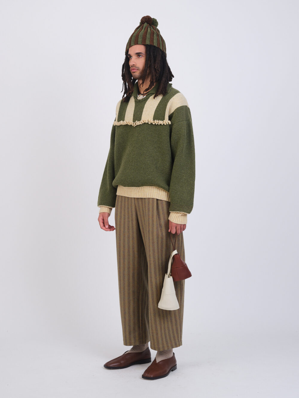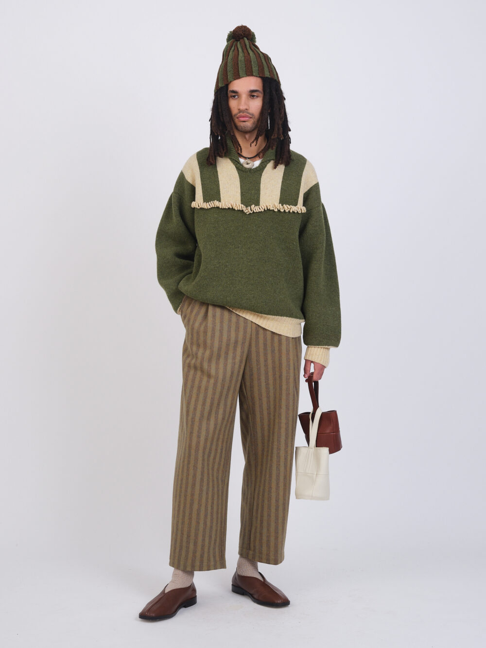 The Felix Jumper is a cozy pullover, featuring a striped yoke, wool fringe detail, knit collar and contrasting cuffs and hemline.