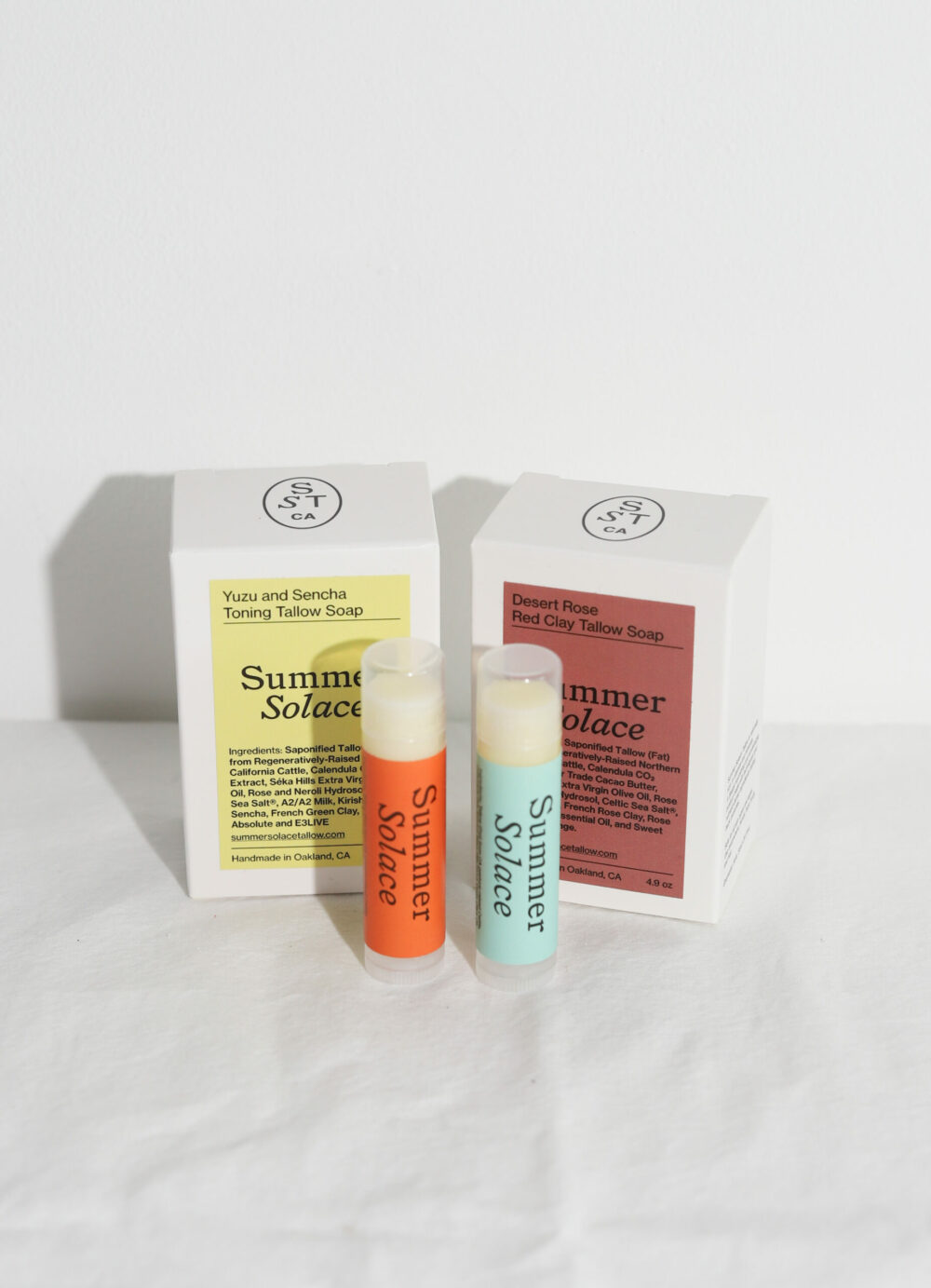 Summer Solace Tallow is a small, family-owned business dedicated to producing slow-made, deeply nourishing, organic tallow-based skincare and home goods, established in Spring 2014 by organic chef and gardener Megan Bre Camp in Oakland, California.
