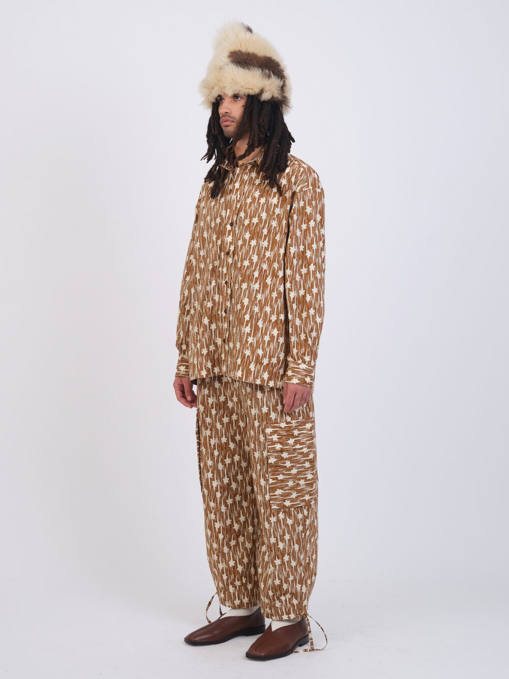 A classic men’s button down, the Players shirt is a slightly oversized style in an exclusive Ikat flower printed crip cotton with button closure.