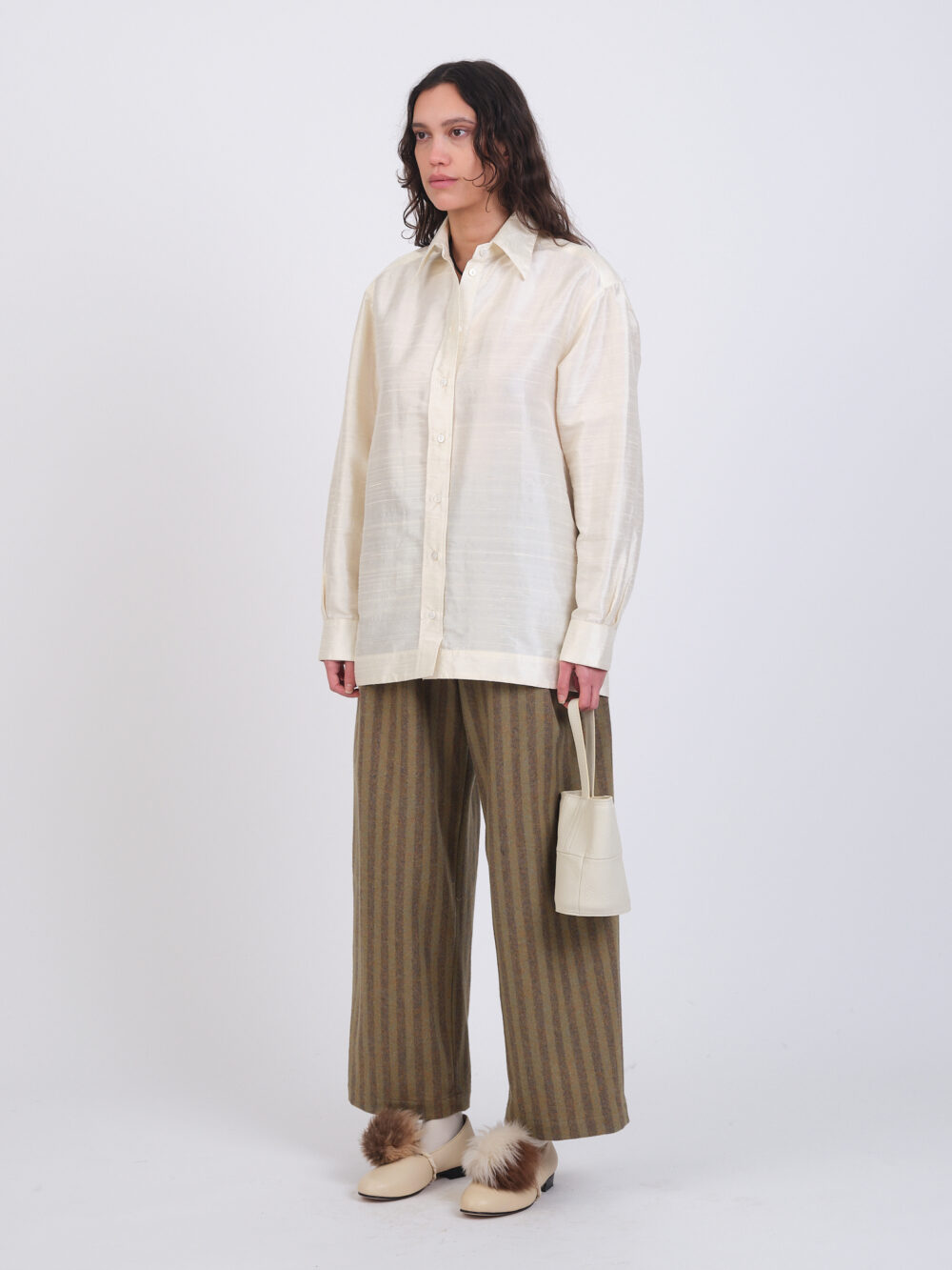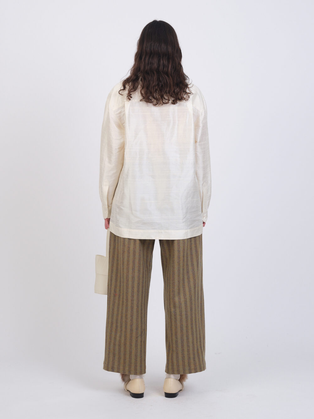Our classic June Shirt in Indian slubbed silk dupion. Featuring two back pleats and a pointed collar.