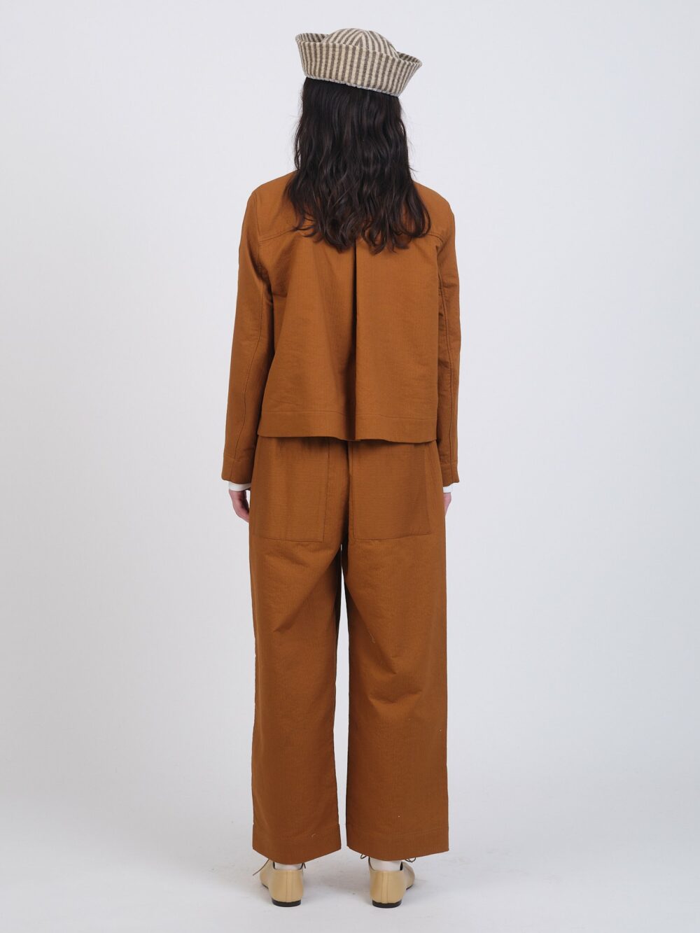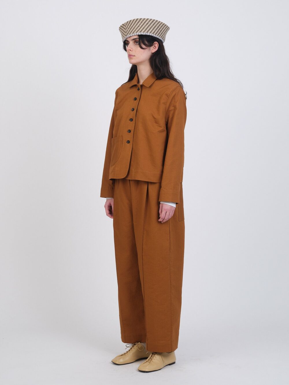 Our classic Lillie Jacket in Japanese running stitched cotton. Featuring a slightly cropped style with one front patch pocket on the righthand side and button closure.