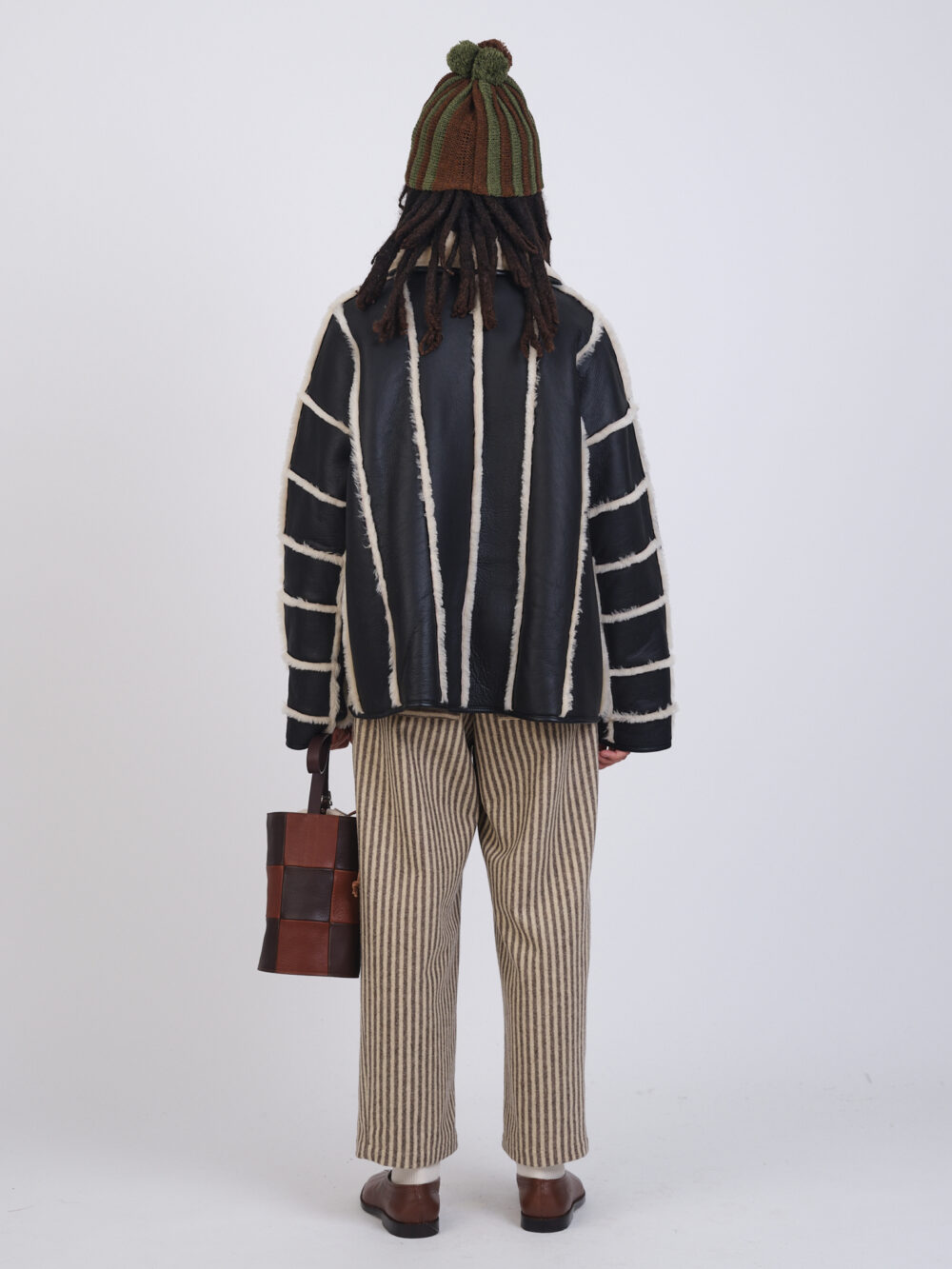 Leather Back Straight Hair Seam Out Stripe Avis Jacket