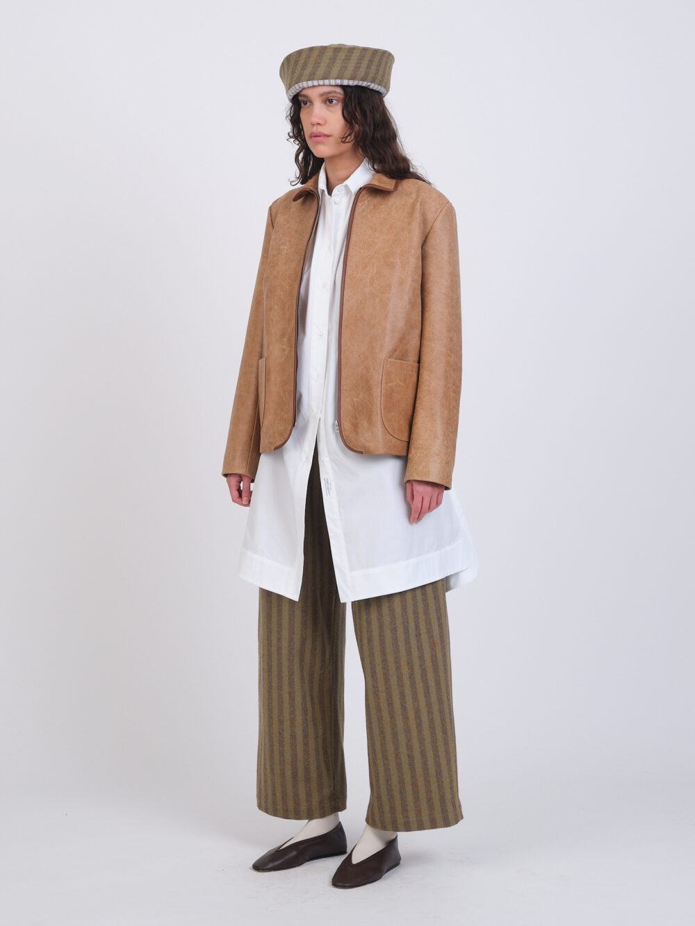 Our classic Lillie Jacket in suede-lined, buttery leather. Featuring a slightly cropped style with front patch pockets, a back box pleat, and zippper closure.